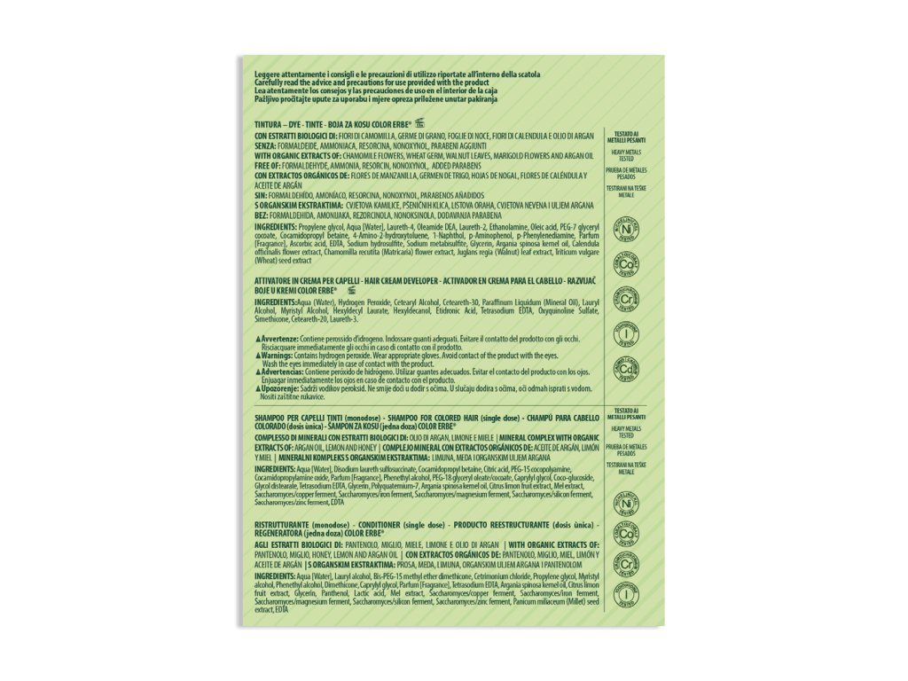 Barvy Color Erbe jsou bohaté na glykolické výtažky z rostlin, které jsou do nich přidány, vzhledem k jejich vlastnostem, aby učinily proces barvení méně agresivní na pokožku a vlasy.