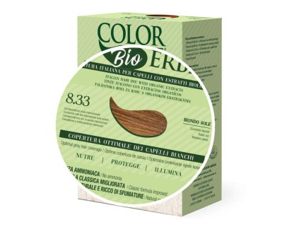 BIO Barva na vlasy Sluneční blond 8.33. Bez amoniaku, resorcinolu, nonoxynolu, parabenů a formaldehydu, avantgardní barva na vlasy, vždy připravena zaručit...