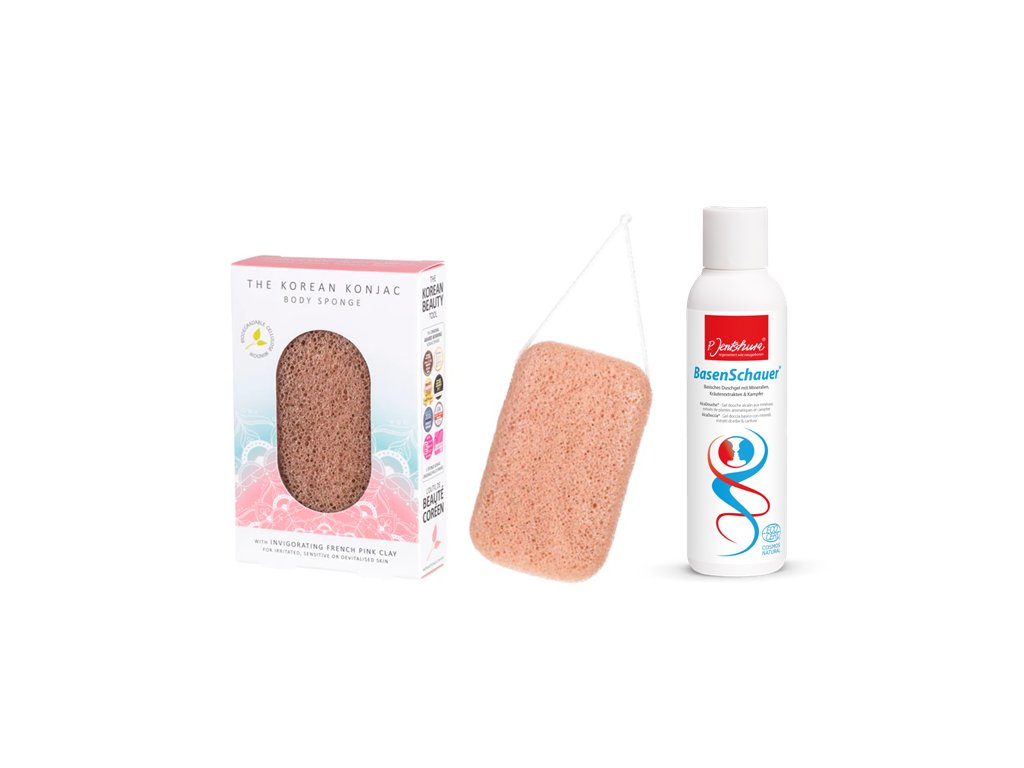 Výhodný dárkový balíček - vhodný pro všechny typy pleti. Balení obsahuje: Konjakovou houbu vyrobenou ze 100% čistého kořene Konjac. BasenSchauer 100ml - zásaditý sprchový...