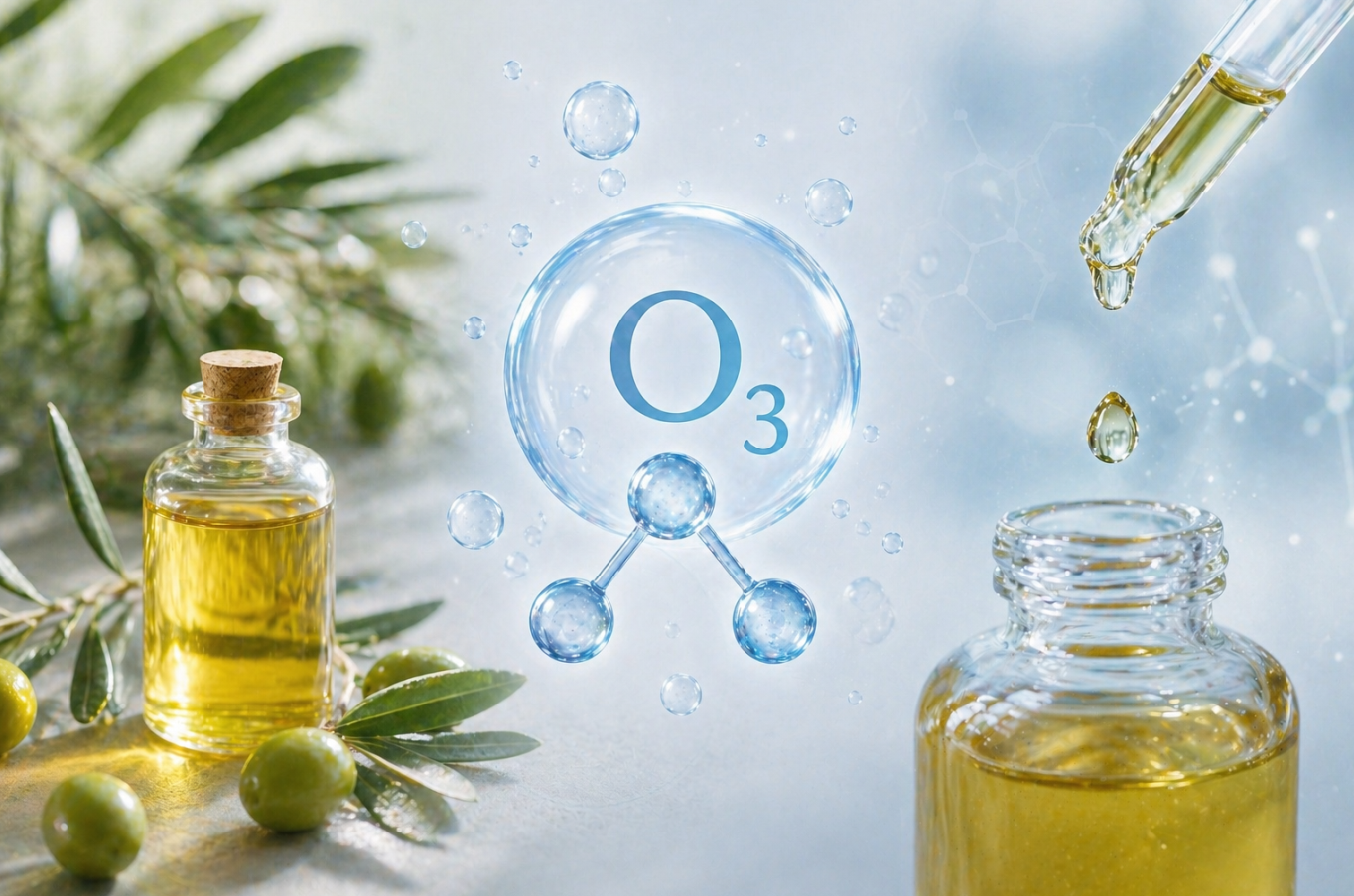 Ačkoliv má ozonizovaný olivový olej stejné, výrazně antiseptické účinky jako i jiné chemické sloučeniny, je v různém směru jedinečný. Je rozpustný v tucích a díky nízkému povrchovému napětí dochází k pronikání do tkáně bez slepování, vytváření usazenin a krust.